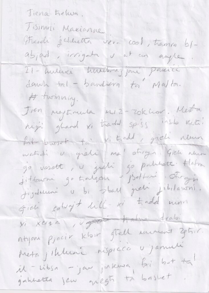 Recently, while taking part in a workshop in Finland, I was asked to write a story from the perspective of an everyday object. I chose a sweet — a silly idea at first, but it quickly turned into something tender. The sweet wonders where it belongs and how long it will be remembered once it’s gone. (Perhaps I was thinking about childhood, or about projects that travel beyond us.) I’m sharing a photo of the scanned paper piece with the story — it’s in Maltese, but if you’d like to know what it says in English, just drop me a line here and I’ll be happy to share the translation.
